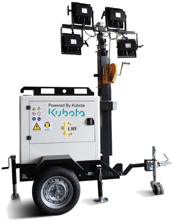 ابراج الاضاءة | تورلايت هي قطعة من المعدات المتنقلة بها مصباح أو أكثر من المصابيح الكهربائية عالية الكثافة وصاري يصل ارتفاعه ٨ – ٩ متر ، حيث يتم توصيل الأضواء بالصاري و الذي يتم توصيله بمقطورة و بمولد تم ضبطه لتشغيل المصابيح